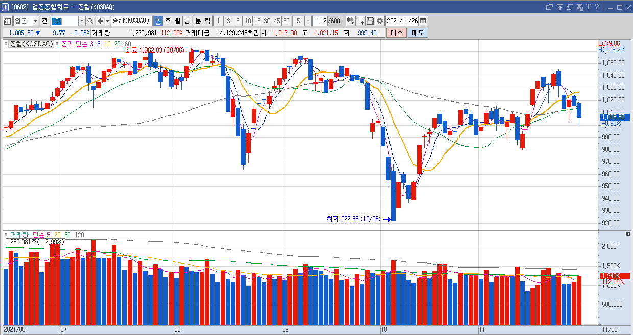 제가 이전에도 설명 드릴 때 코스피보다 코스닥의 흐름이 더 좋다라는 말을 여러 번 했었는데요. 코스닥은 어느정도 살려주면서 지수를 끌어올려 줬던 흐름들이 나와줬었습니다. 물론 오늘 떨어진 흐름은 같았지만요. 코스닥 지수는 1차적으로 1000포인트를 지켜줄 것인가에 대한 시험이 시작될 것 같습니다.