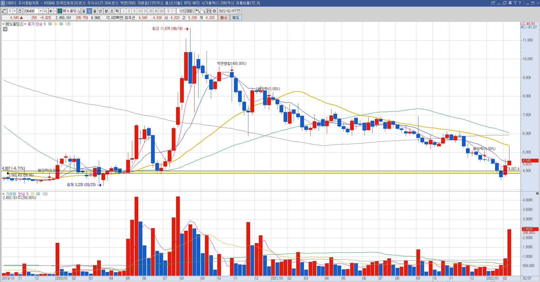 오늘 새롭게 편입 및 분할매수를 시작하게 될 종목은 베노홀딩스라는 종목 입니다.