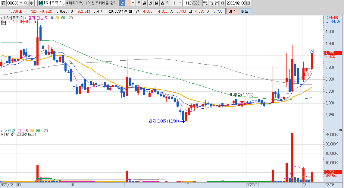 일단 최근에 매수한 종목 중에서 오늘 소개해 드릴 종목 중 첫번째는 LS네트웍스라는 종목 입니다.