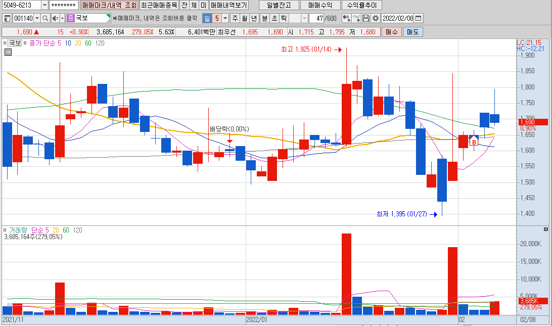 이 종목은 '국보' 라는 종목인데요, 이 종목도 비슷한 시기에 진입한 종목 입니다.