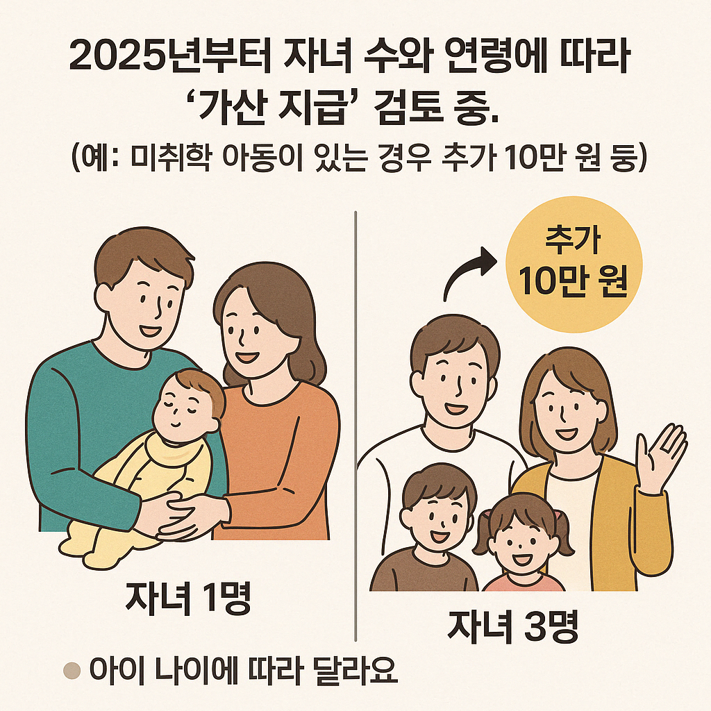 2025년부터 자녀 수와 연령에 따라 ‘가산 지급’ 검토 중.